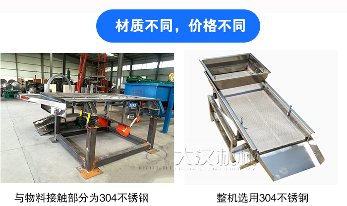 降溫直線篩直線振動篩材質(zhì)主要有碳鋼與不銹鋼兩種:①與物料接觸部分為304不銹鋼材質(zhì),其他部分選用碳鋼材質(zhì);②整機(jī)選用304不銹鋼材質(zhì)。不銹鋼材質(zhì)的采購成本比碳鋼材質(zhì)高,所以相對于第種方案,第二種會更加貴些。