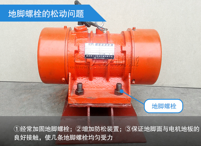 預(yù)防措施:①經(jīng)常加固地腳螺栓;②增加防松裝置;③保證地腳面與電機(jī)地板的良好接觸,使幾條地腳螺栓均勻受力。