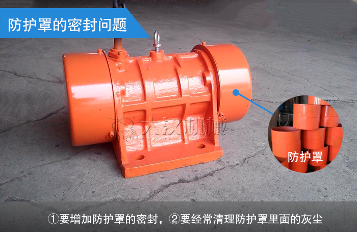 由于振動(dòng)電機(jī)的工作環(huán)境大都非常惡劣、粉塵大,如果防護(hù)罩密封不嚴(yán),很容易進(jìn)灰塵,引起偏心塊的摩擦運(yùn)轉(zhuǎn),從而燒毀電機(jī)。所以在工作環(huán)境惡劣的地方,要增加防護(hù)罩的密封,二要經(jīng)常清理防護(hù)罩里面的灰塵。