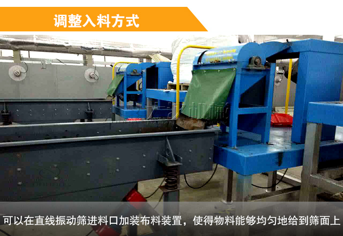 可以在直線振動篩進料口加裝布料裝置,使得物料能夠均勻地給到篩面上,這樣杜宇提高直線篩篩分產量有很大地幫助。